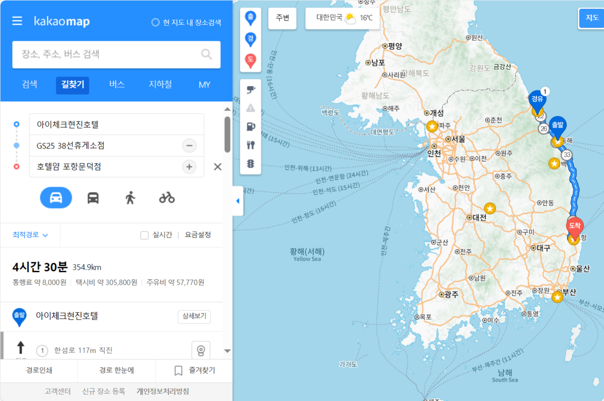 今回はこの旅の目的地「38度線のモニュメント」に到達後、国道7号線を折り返し、鉄鋼都市「浦項」を目指す。